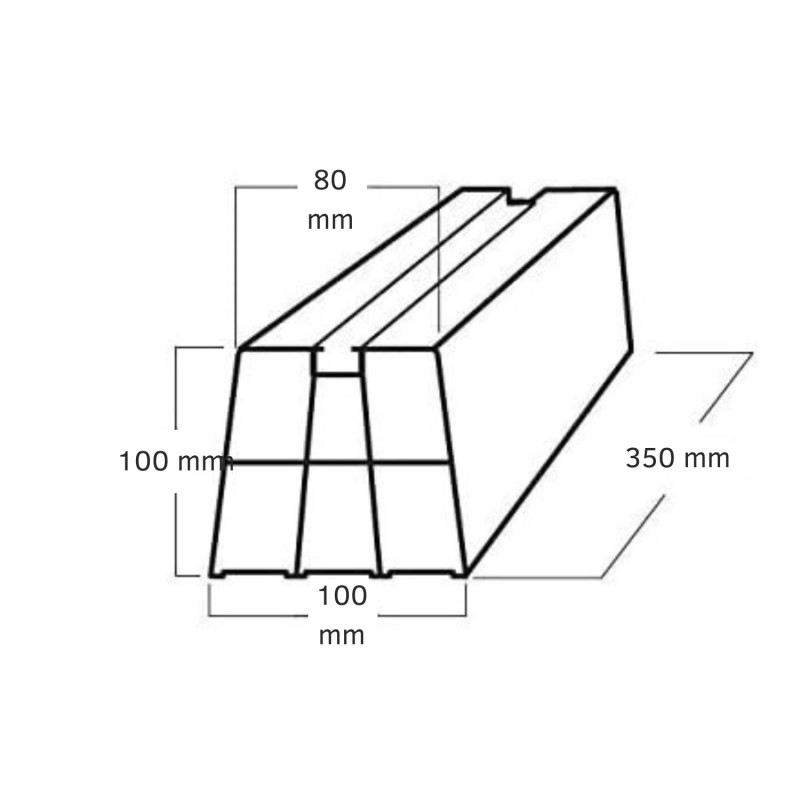 Altezza 100mm - Lunghezza: 350mm - Larghezza Inferiore 100mm - Larghezza Superiore 80mm