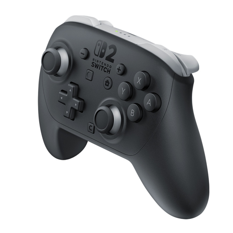 Il Nintendo Switch 2 Pro Controller si ricarica tramite il blocco alimentatore per Nintendo Switch 2 o il cavo di ricarica USB incluso.