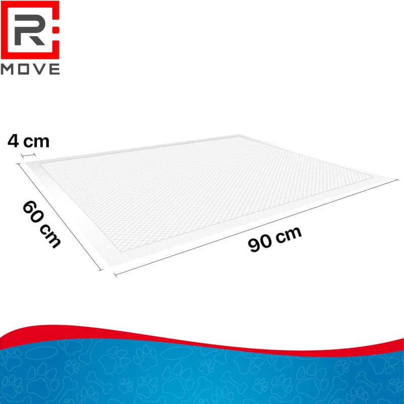 Dimensioni traversina: 60cm x 90cm. Misura bordo esterno ± 4 cm. Peso singola traversina 60 gr di cui l'80% di materiale assorbente (parte superiore) e il 20% di materiale impermeabile (strato inferiore)