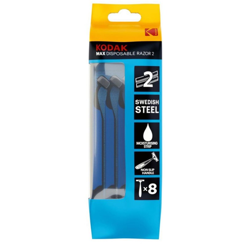 8 Pz. Rasoi Usa e Getta 2 Lame con impugnatura ergonomica - KODAK MAX DISPOSABLE RAZOR 2 AZZURRI