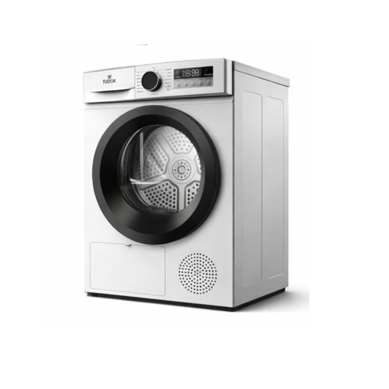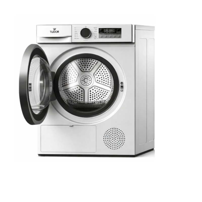 Asciugatrice a pompa di calore con capacità di 8 kg,progettata per offrire efficienza e versatilità nell’asciugatura quotidiana.Dotata di 15 programmi dedicati per diversi tipi di tessuto, tra cui eco,delicati, sportivi e igiene, garantisce risultati ottimali in ogni situazione.Il controllo meccanico con manopola e il display LED rendono l’utilizzosemplice e intuitivo. Include funzioni pratiche come partenza ritardata,antipiega e blocco bambini per una maggiore sicurezza e comodità.