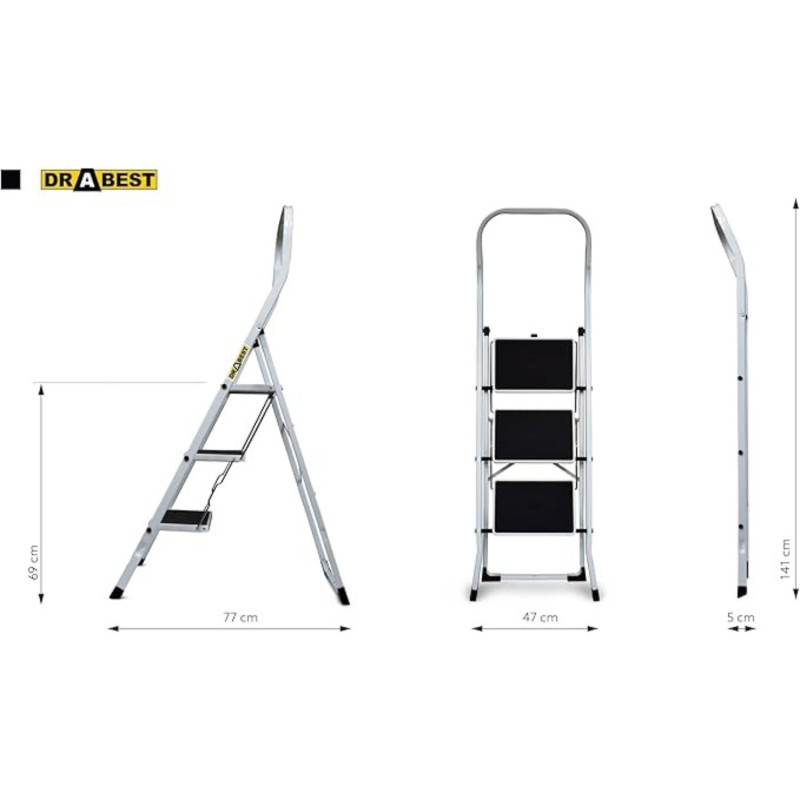 Costruzione in acciaio verniciato bianco di alta qualità: Realizzata in acciaio di prima qualità con proprietà anticorrosive, la nostra scala è rifinita con un elegante rivestimento bianco. Ciò non solo ne migliora l'aspetto estetico, ma garantisce anche una lunga durata, rendendolo ideale per uffici, case o ambienti gastronomici.