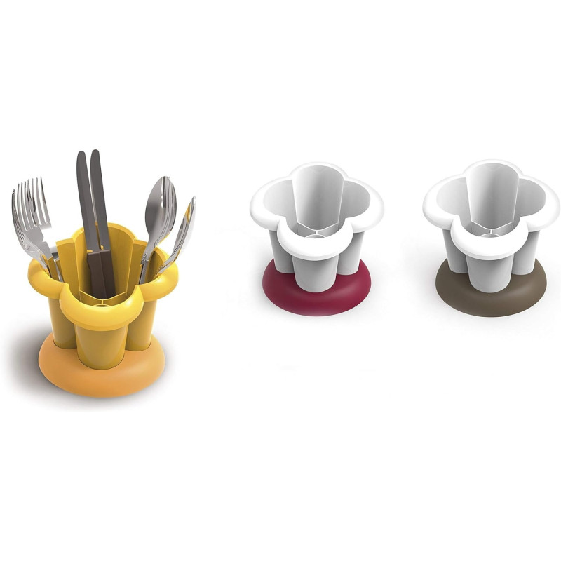 Grazioso e capiente portaposate a forma di fiore disponibile in combinazioni colore assortite. Dotato di base raccogligocce smontabile per una facile pulizia.