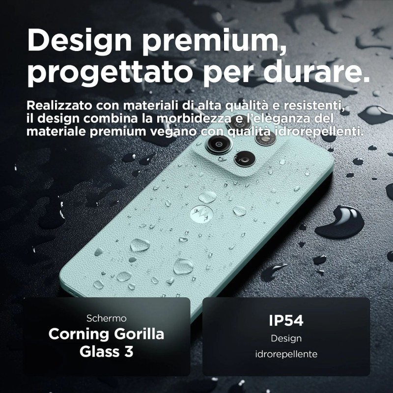 Design elegante ma resistente. Goditi il look raffinato del materiale premium vegano in un design idrorepellente con Corning Gorilla Glass 3.
