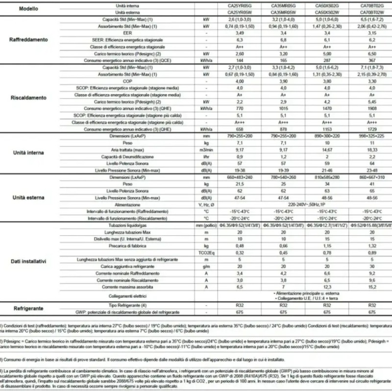 Tipo di refrigerante: R32