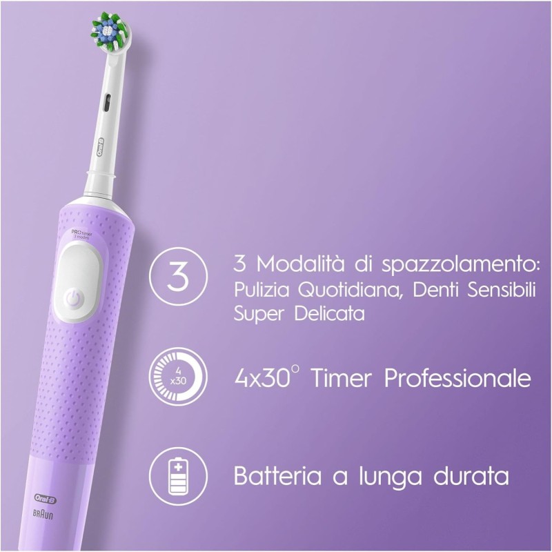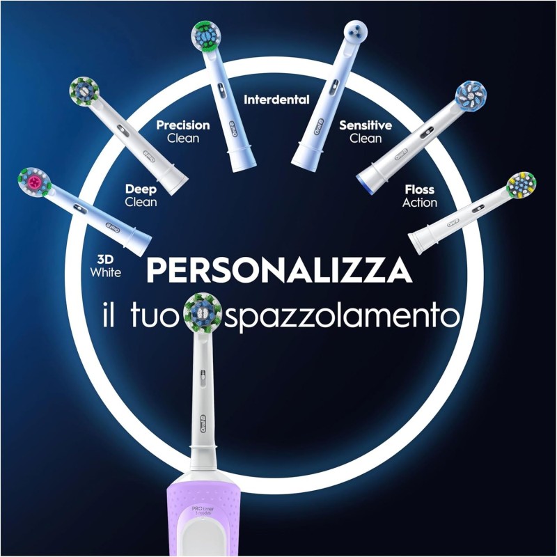 Per una PULIZIA PROFONDA rispetto ad uno spazzolino manuale: delicato sulle gengive, igiene perfetta su ogni singolo dente e azione efficace contro la carie grazie alla tecnologia di pulizia professionale Oral-B