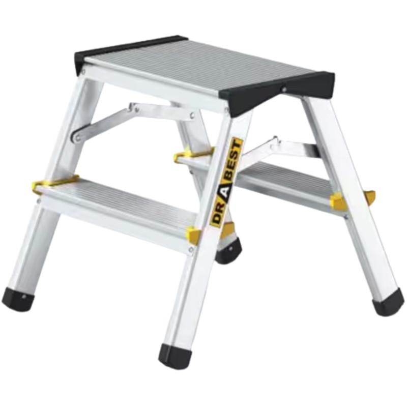 Questo sgabello in alluminio a doppia salita con gambe pieghevoli, è un prodotto di alta qualità progettato per lavorare a varie altezze.