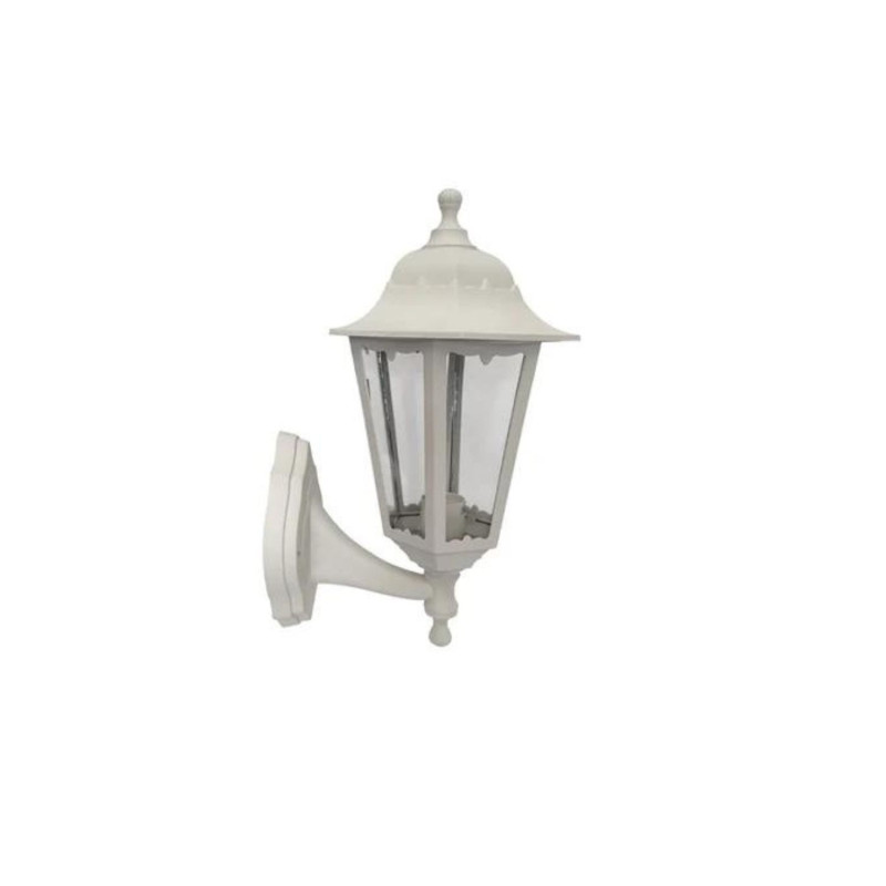 Lanterna con braccio di sostegno reversibile in alto o in basso. Corpo realizzato totalmente in polipropilene (PP) con schermo protettivo in vetro trasparente. Ideale complemento d'arredo per illuminazione di spazi aperti, per delimitare vialetti, marciapiedi o muri perimetrali.