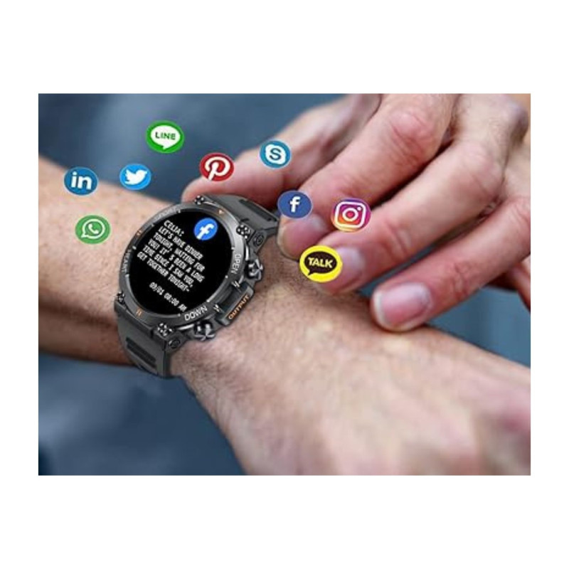 CHIAMATE BLUETOOTH E PROMEMORIA PER MESSAGG: Altoparlante e microfono integrati di alta qualità, basta collegare il telefono tramite Bluetooth per rispondere ed effettuare facilmente le chiamate e ricevere le informazioni sul telefono cellulare e le notifiche delle applicazioni. Collegando Berrosy smartwatch con risposta chiamate al tuo cellulare, puoi ricevere promemoria con vibrazione di messaggi di testo, chiamate e SNS ( Facebook, WhatsApp, Instagram, Snapchat, Skype, Line ecc.).