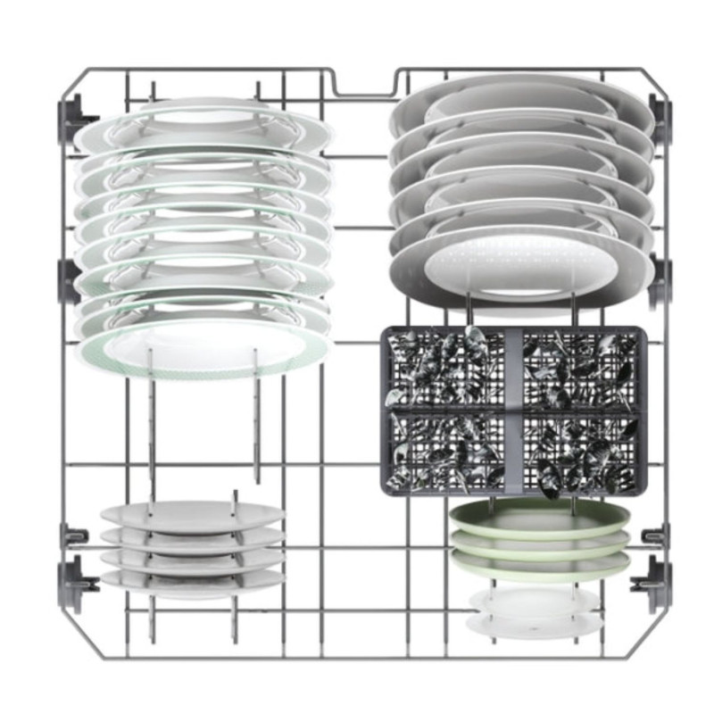 La nuova Candy Rapido' ha la vasca più spaziosa del mercato(in formato standard) che offre la massima capienza per le stoviglie, anche lepiù grandi come teglie da forno, taglieri e insalatiere.