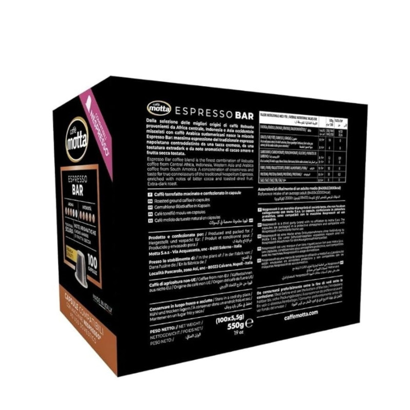 100 capsule compatibili con le macchine ad uso domestico a marchio Nespresso* Inissia, Pixie, Citiz, Citiz&milk, Lattissima, Lattissima Pro, Lattissima&milk, MiniEssenza, Essenza, Prodigio, U