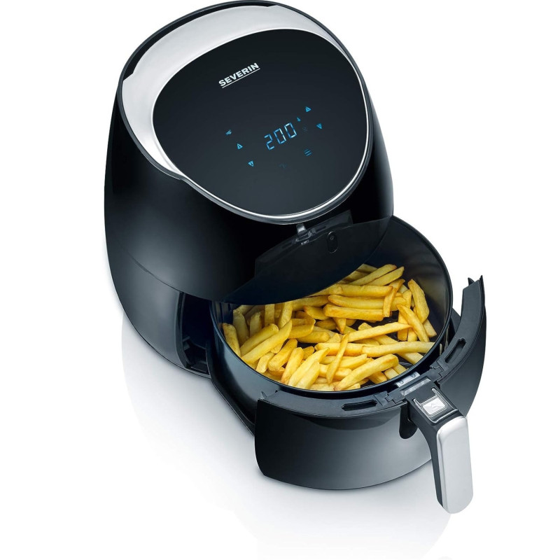 Dettagli prodotto: Friggitrice SEVERIN ad aria calda, con 8 programmi automatici, cestello friggitrice in ceramica, timer da 60 minuti con segnale acustico, articolo numero FR 2445