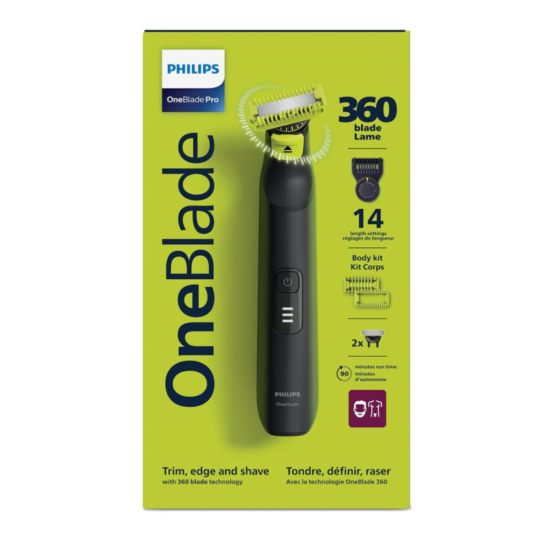 Philips OneBlade Pro Face + Body, rade, regola e rifinisce la barba di qualsiasi lunghezza.
