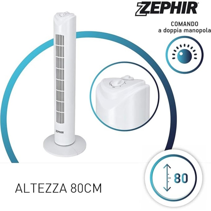 COLONNA OSCILLANTE: Questa colonna oscillante grazie alla sua altezza di 80cm disperde aria fresca a più livelli di altezza in tutto l'ambiente.