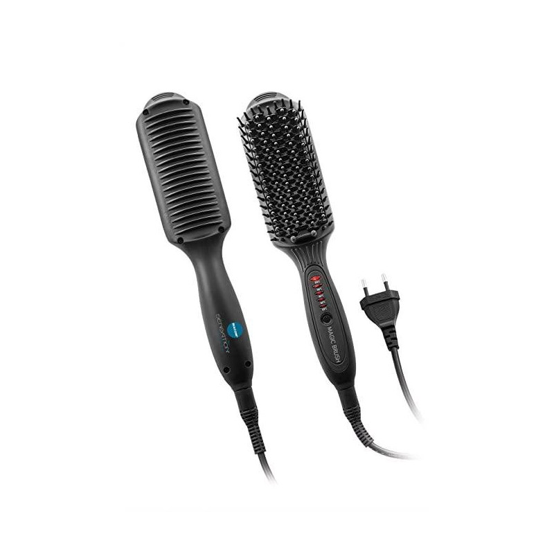 Setole morbide in silicone per proteggere la cute. Elementi riscaldanti in ceramica per lisciare i capelli distribuendo in modo uniforme il calore e ottenere risultati impeccabili. Impugnatura ergonomica.