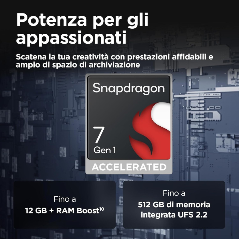 Processore: Snapdragon 6 Gen 1 di Qualcomm con 8 core a 2 GHz.