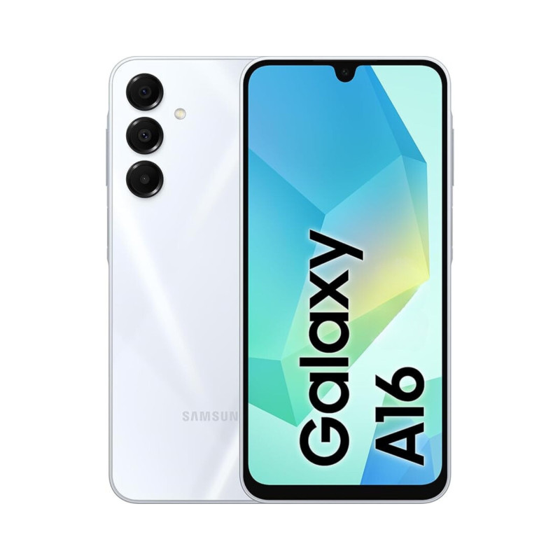 Samsung Galaxy A16. Dimensioni diagonale schermo: 17 cm (6.7"), Risoluzione del display: 1080 x 2340 Pixel. Frequenza del processore: 2 GHz. Capacità della RAM: 4 GB, Capacità memoria interna: 128 GB. Risoluzione fotocamera posteriore (numerico): 50 MP, Tipo di fotocamera posteriore: Tripla fotocamera. Capacità della scheda SIM: Dual SIM ibrida. Capacità della batteria: 5000 mAh. Colore del prodotto: Grigio. Peso: 200 g