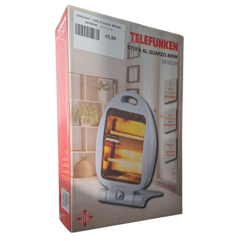 Stufa al quarzo Telefunken M08215 2 potenze di riscaldamento 400W e 800W design moderno e raffinato protezione automatica contro il ribaltamento tubi al quarzo riscaldamento lungo e uniforme Design Elegante: Colore bianco moderno e raffinato Affidabilità Telefunken: Goditi la qualità e l'innovazione che solo un marchio storico come Telefunken può offrire.