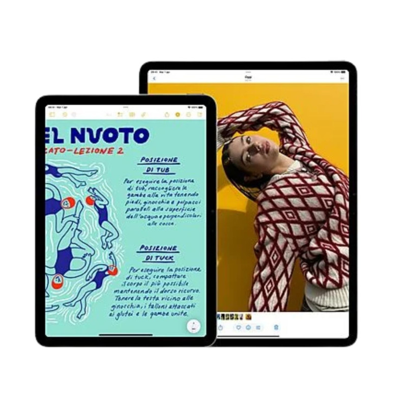 Puoi scegliere iPad Air nel formato da 11" o 13":hanno entrambi uno splendido display Liquid Retina ad alta risoluzione che rende spettacolare tutto quello che fai. E sono pronti ad aprirti un mondo fatto di immagini fluide e brillanti, e colori ultrafedeli.