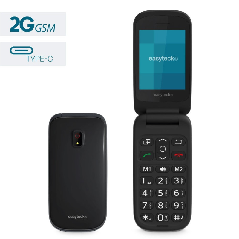 Cellulare dal design distintivo di piccole e compatte dimensioni. Con tasti facilmente accessibili, tastiera parlante, connettività 2G e tutte le funzioni fondamentali per le esigenze di comunicazione odierne. Disponibile la scelta tra quattro colorazioni diverse: nero, grigio, blu e rosso. Inoltre possiede anche una fotocamera, radio, sveglia e torcia. Ingresso Type-c per la ricarica e uno stand-by di fino a 200 ore. Il flip (conchiglia) permette di rispondere e terminare le chiamate aprendo o chiudendo comodamente il telefono.